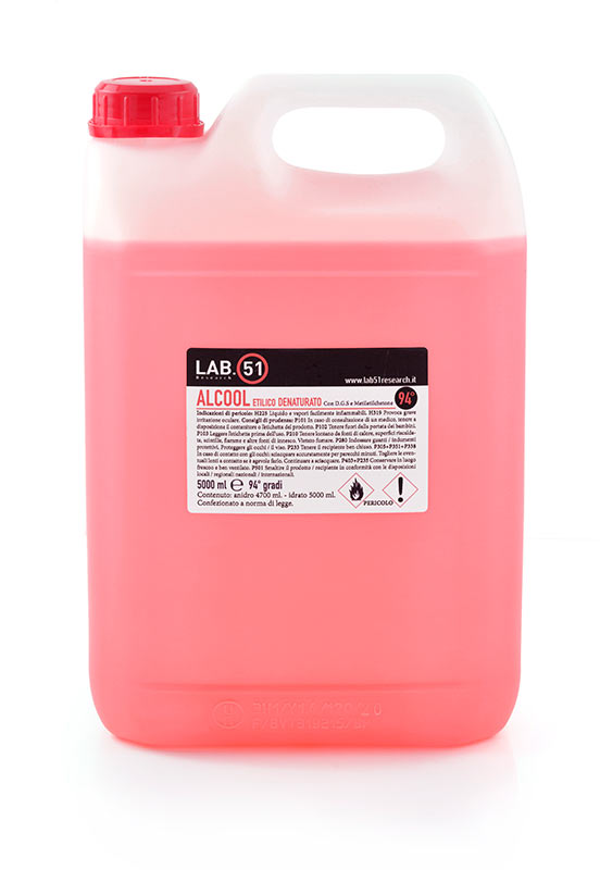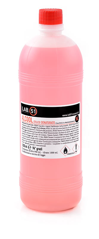 - LAB51 rappresenta la confezione di alcool etilico denaturato con D.G.S. e Metiletilchetone proposta da LAB.51 in confezione da 1000ml o 5000ml confezionato a norma di legge.